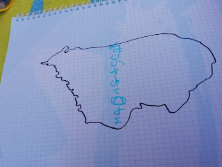 Collede as vosas cousas de exploradores porque temos que baixar a terra. Hai algo de cores moi distintas movéndose polas árbores que desperta a miña curiosidade. Estou mirando algo azul polos anteollos e de súpeto vira a cor marrón. Que pode ser? Non sei se estarei a volverme tola despois de tantos días de navegación.